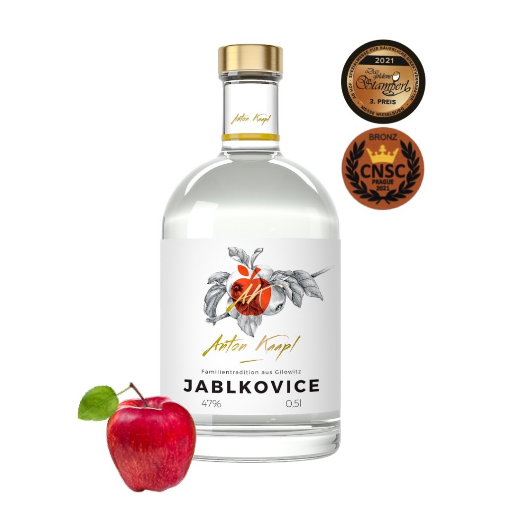 Objevte klasickou českou jablkovici, kterou jsme dovedli téměř k dokonalosti. Anton Kaapl Jablkovice 47% je vyrobená pečlivým alkoholovým kvašením a destilací z vyzrálých a sladkých jablek od našeho ovocnáře z oblasti jihočeských Lhenic. Destilace probíhá pod dohledem mistra destilatéra, který se s citem postará o zachování požadované vůně a chuti po jablíčkách.
