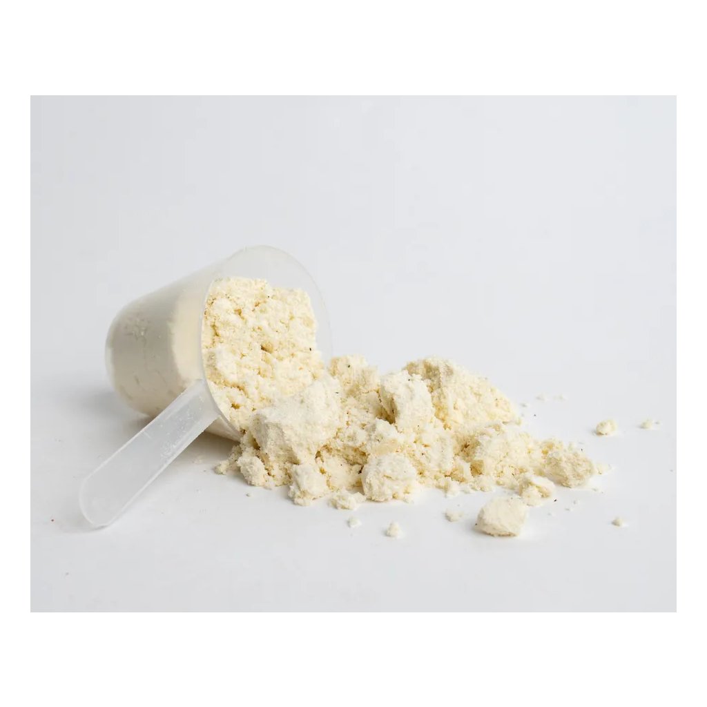 Die Basis des Produkts ist Molke aus hochwertiger Milch von Kühen, die mindestens 10 Monate im Jahr auf der Weide grasen. Dadurch weist sie ein günstigeres Fettsäureverhältnis auf als Milch von Kühen, die mit Mischfutter gefüttert werden, was sich in der Proteinqualität widerspiegelt. Die Kühe werden von britischen Landwirten gehalten, die Wert auf nachhaltige Landwirtschaft und artgerechte Tierhaltung legen. Molkenprotein hat eine ähnliche Bioverfügbarkeit wie Fleisch und ist daher für den menschlichen Körper besonders gut verwertbar. Es ist hervorragend verdaulich und enthält einen hohen Anteil an essentiellen Aminosäuren, darunter natürlicherweise verzweigtkettige Aminosäuren (BCAAs) und Leucin. Diese Aminosäuren sind ein wichtiger Baustein für die Anregung von Muskelwachstum und -regeneration. Wir verzichten strikt auf künstliche Aromen und Farbstoffe, die lediglich den Geschmack verändern, und sind laborzertifiziert für einen Gehalt an null Schwermetallen. Unser Protein bewahrt den authentischen Geschmack und die Farbe von Vanille, Kakao, gefriergetrockneten Bananen und Erdbeeren sowie anderen natürlichen Zutaten.