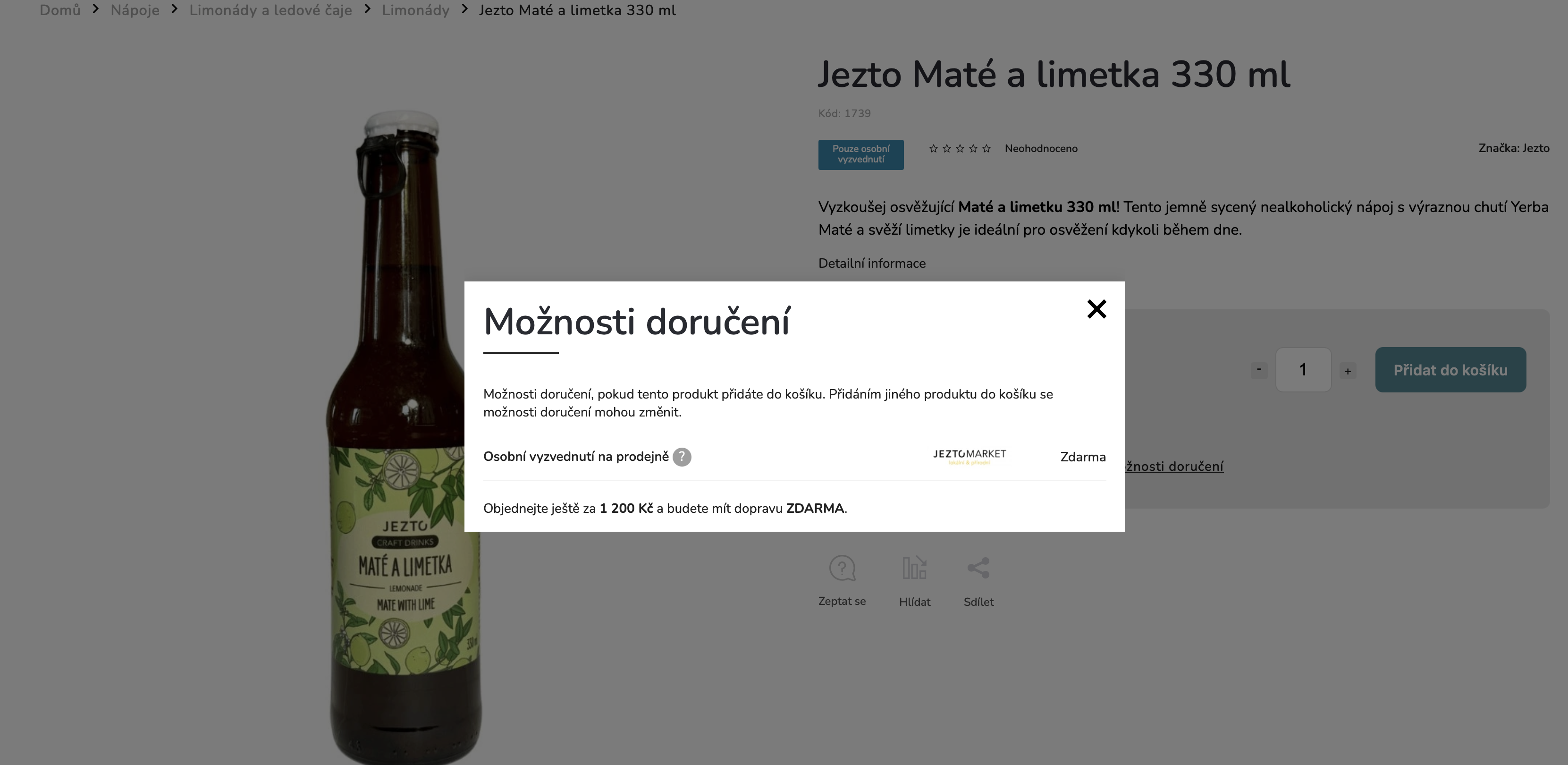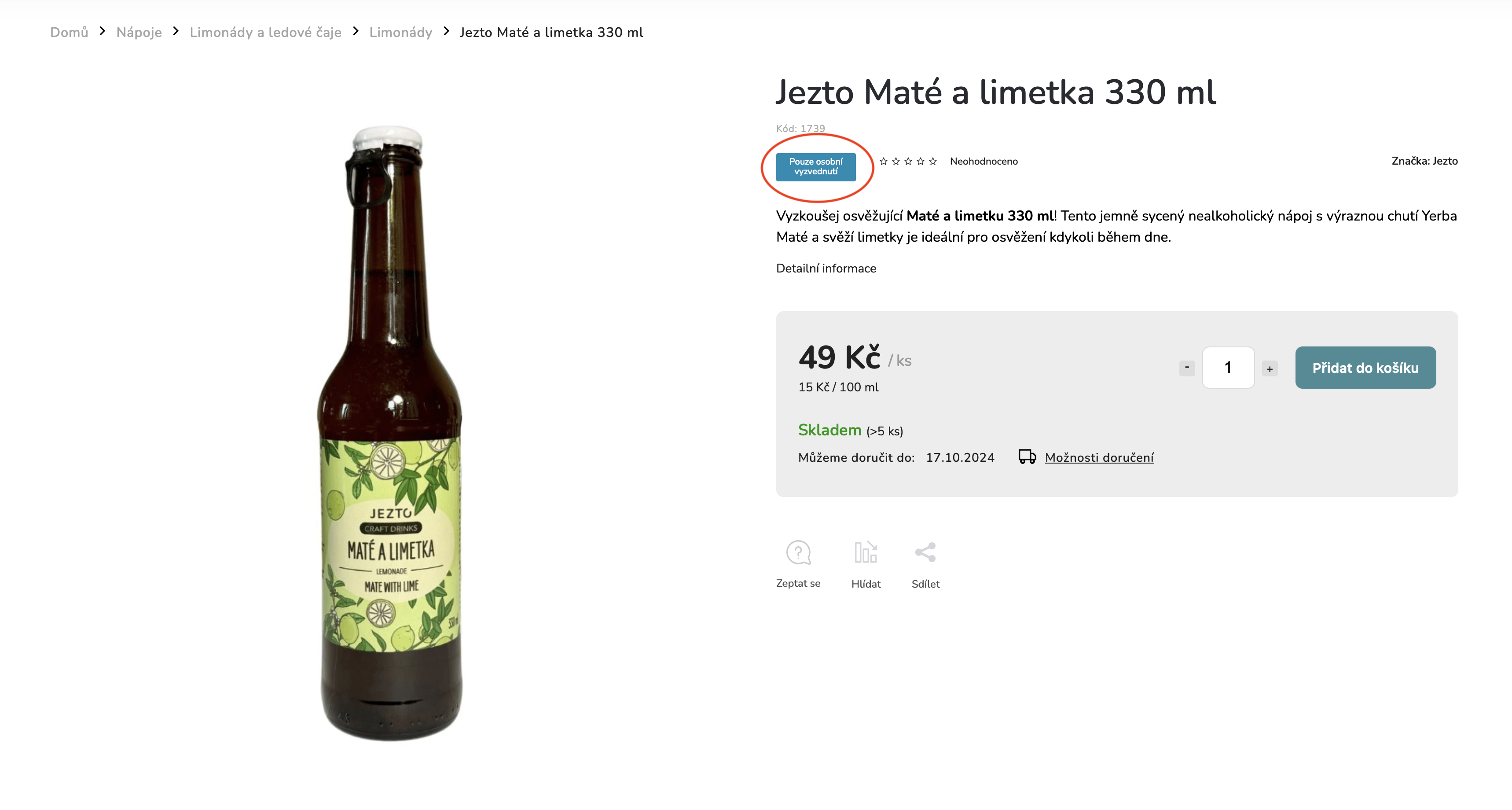 Důležité je vědět, že nelze kombinovat produkty s příznakem "Pouze osobní vyzvednutí" a produkty, které lze odeslat přepravcem. Pokud máte v košíku produkt s osobním vyzvednutím, systém vám automaticky nabídne pouze možnost osobního odběru na naší prodejně.