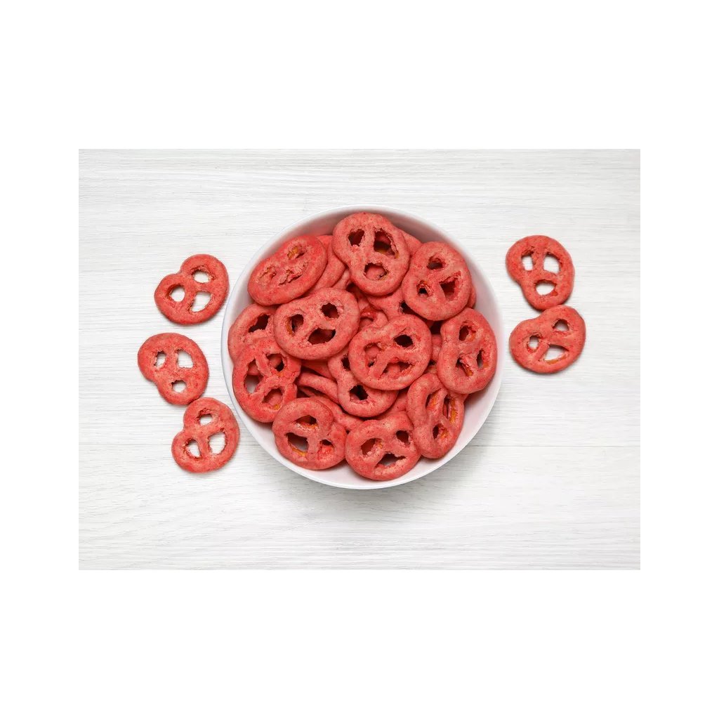 Zakochaliśmy się w połączeniu jogurtowej czekolady z liofilizowanym pyłem truskawkowym. Zakochaliśmy się również w pięknie wypieczonych preclach. A teraz Ty pokochasz połączenie obu smakołyków! Pod warstwą białej czekolady z jogurtem chrupie złocisty, wypieczony precel, a truskawkowy pył wieńczy całą magię. PS: Harmonia truskawek, jogurtu i czekolady przywodzi na myśl smak lodów truskawkowych, a chrupkość precla przypomina wgryzanie się w rożek lodowy.